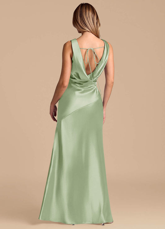 Eucalyptus A-Line with Belt Stretch Satin Dress