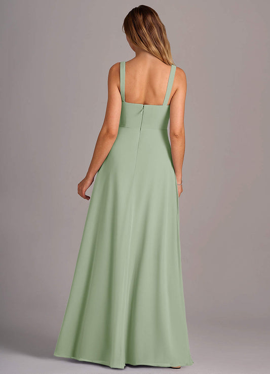 Dusty Sage A-Line Long Sleeve Velvet Dress