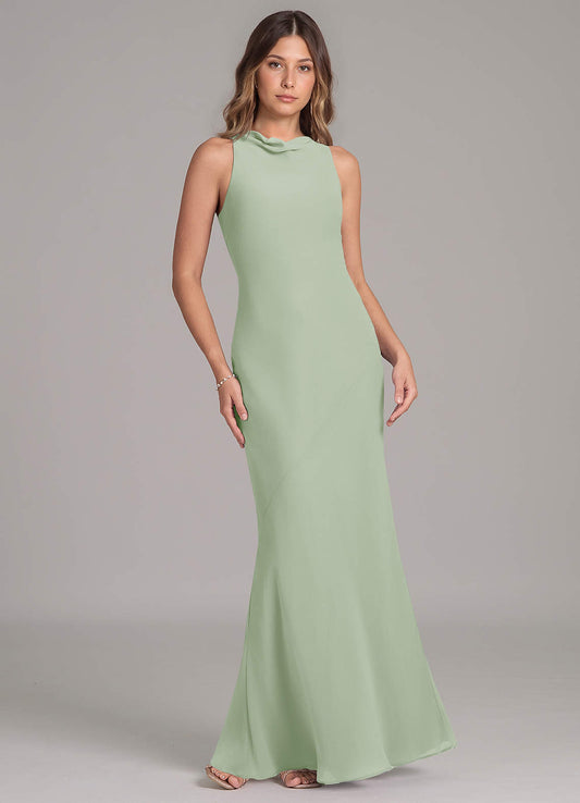 Eucalyptus A-Line V-Neck Chiffon Dress