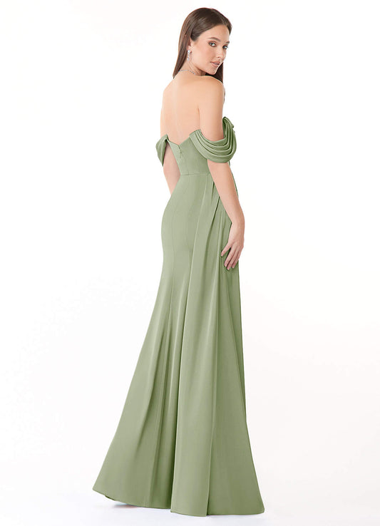 Dusty Sage Sheath Pleated Stretch Satin Dress