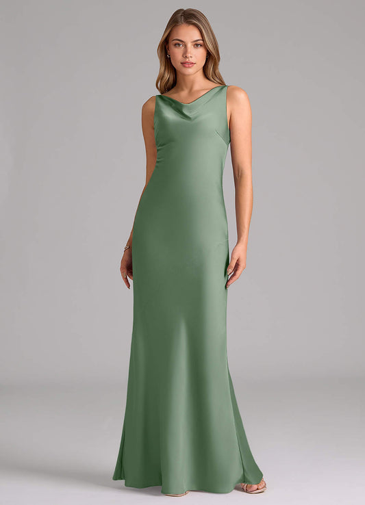 Dusty Blue Mermaid Stretch Satin Dress