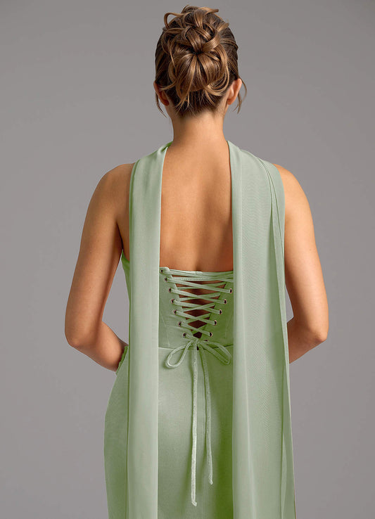 Eucalyptus A-Line Sweetheart Neckline Chiffon Dress