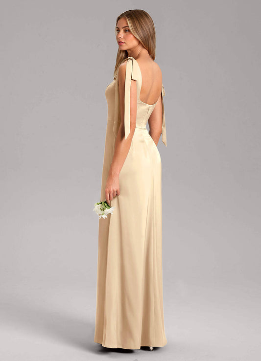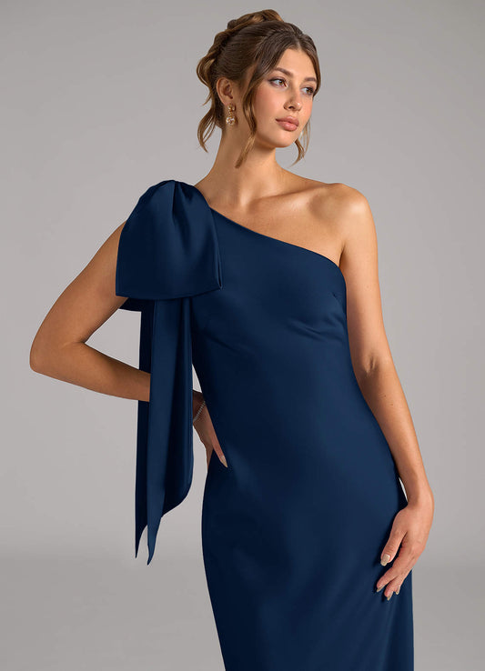 Dusty Blue A-Line Bow Stretch Satin Dress