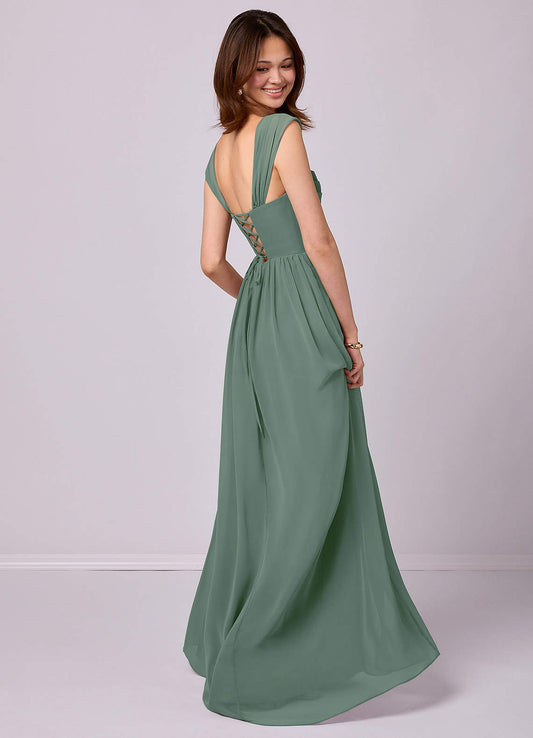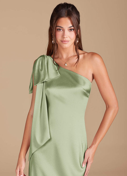Eucalyptus A-Line One Shoulder Chiffon Dress