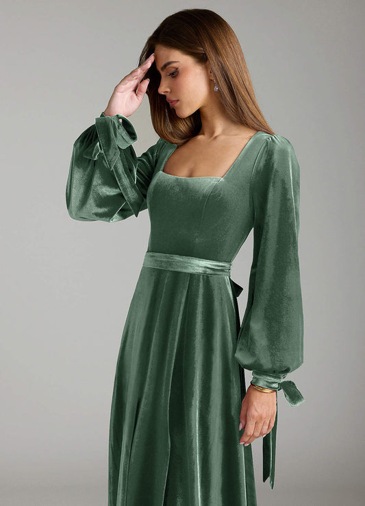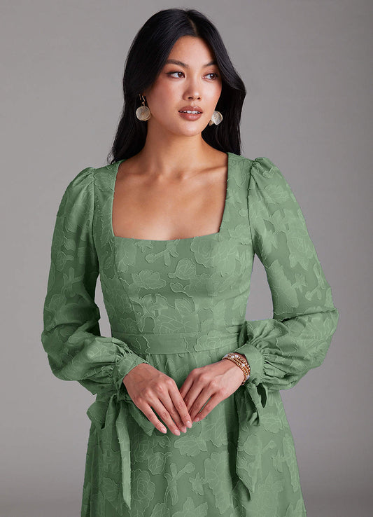 Eucalyptus A-Line Long Sleeve Chiffon Dress