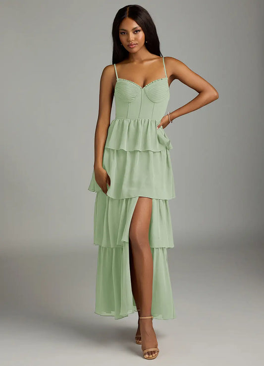 Dusty Blue A-Line Sweetheart Neckline Chiffon Dress