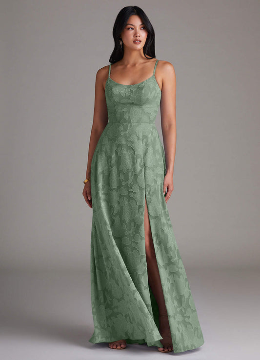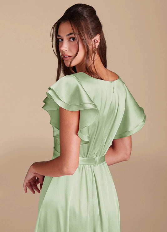 A-Line Ruched Stretch Satin Floor-Length Dress Terracotta