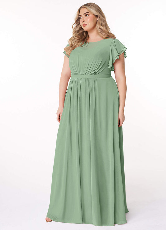 A-Line Ruffled Chiffon Floor-Length Dress Burgundy