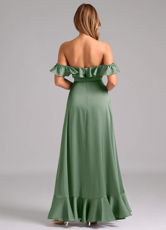 Rust A-Line Off the Shoulder Stretch Satin Convertible Dress