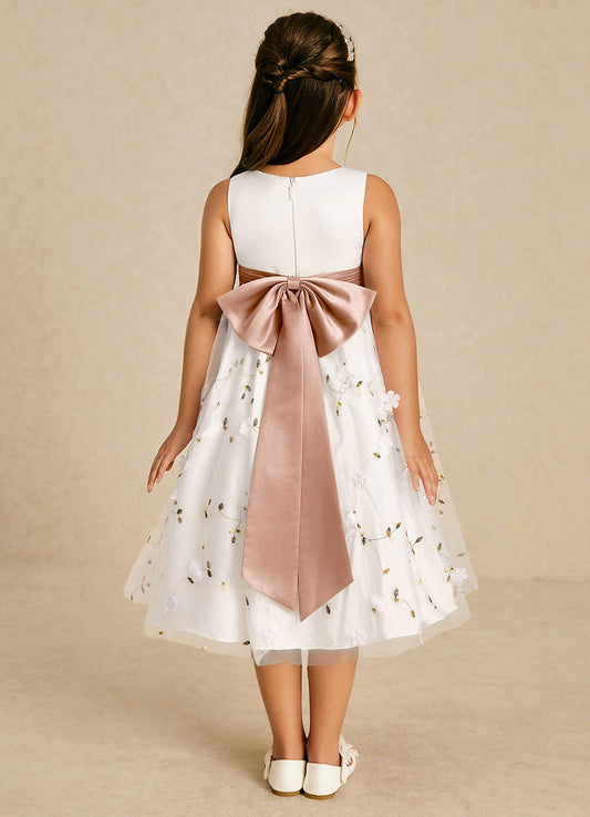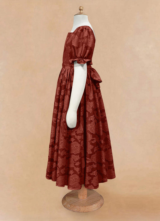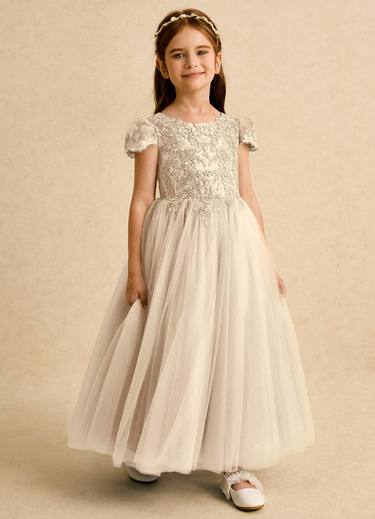 Champagne A-Line with Sleeves Floral Burnout Dress