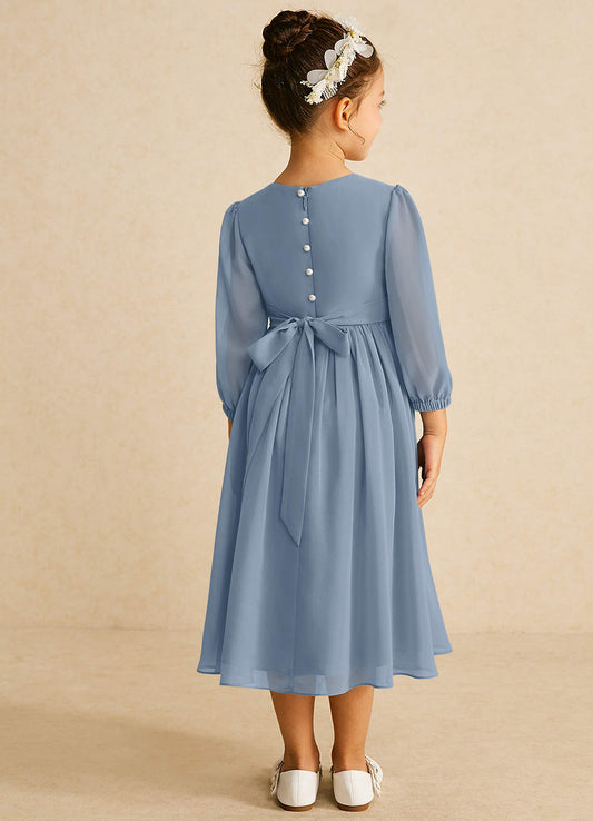 Steel Blue A-Line with Sleeves Chiffon Dress
