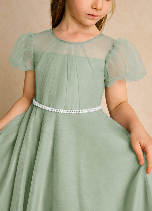 Dusty Sage A-Line with Sleeves Chiffon Dress