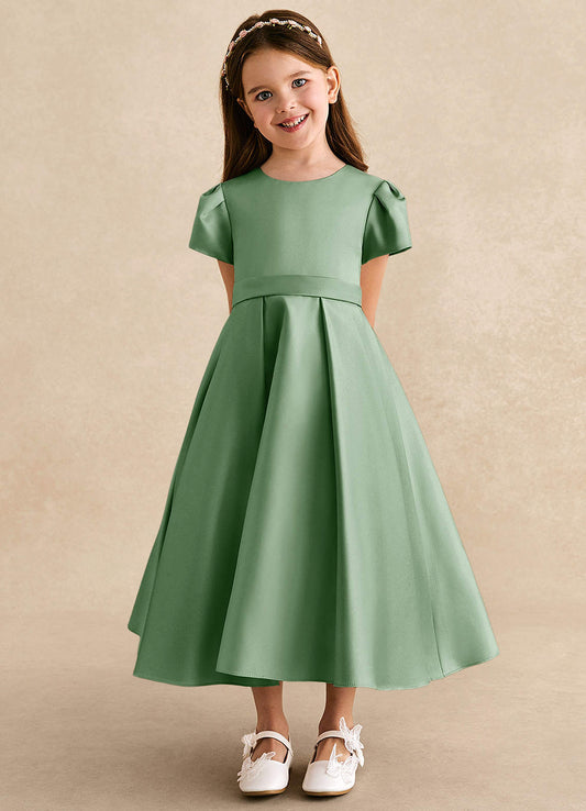 Dusty Sage A-Line Pleated Matte Satin Dress