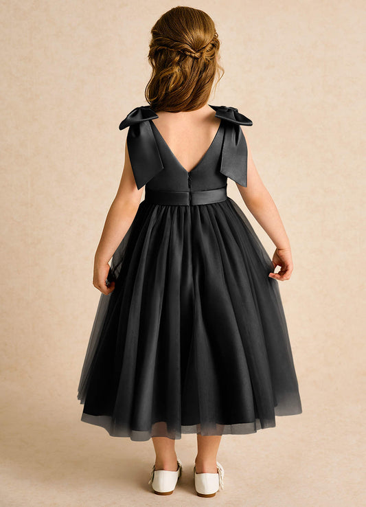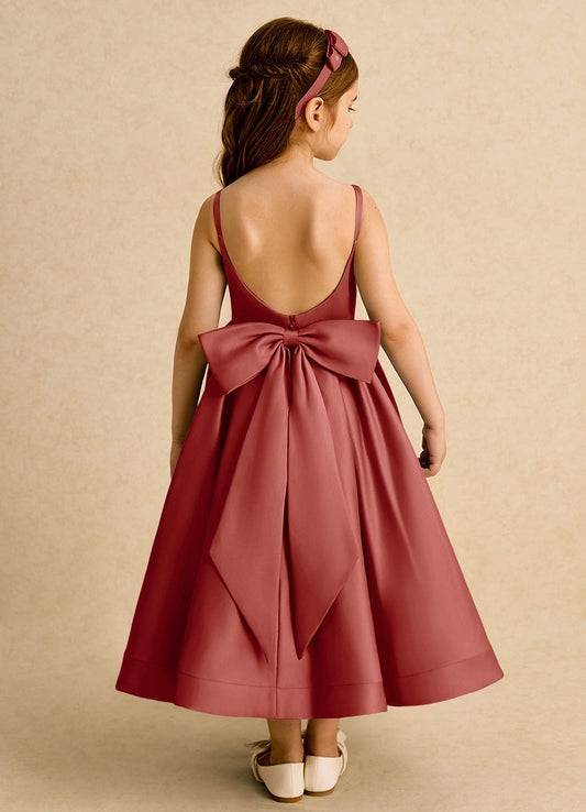 Blushing Pink Ball-Gown Bow Matte Satin Dress
