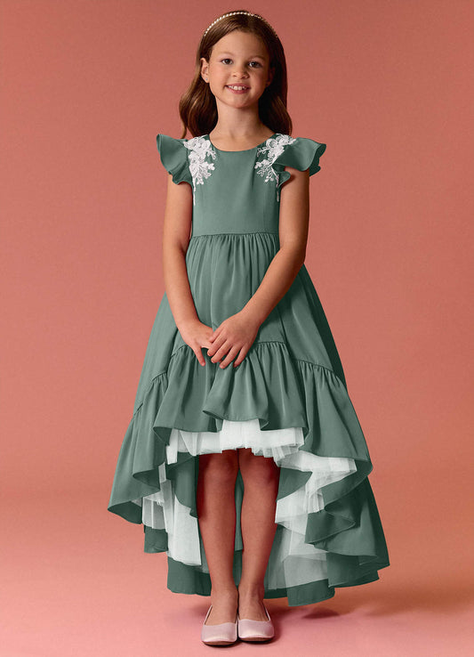Eucalyptus A-Line Lace Stretch Satin Dress eucalyptus