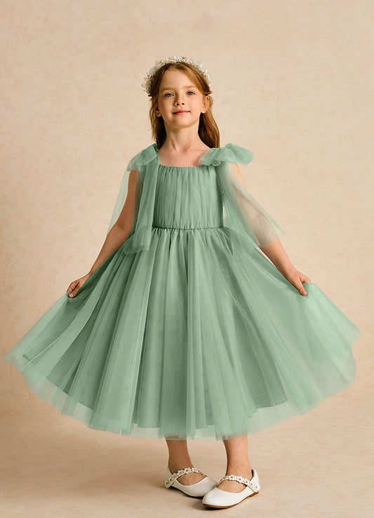 Dusty Sage A-Line Pleated Matte Satin Dress