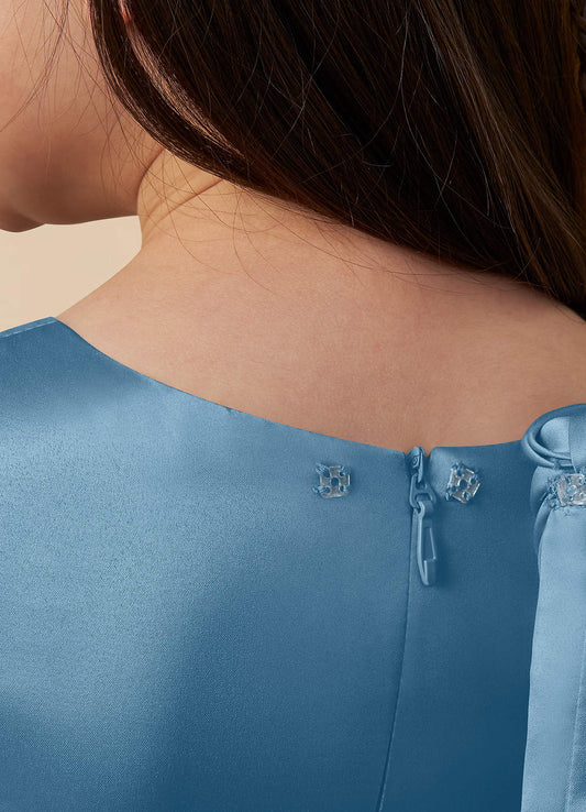 Sky Blue Ball-Gown Pleated Matte Satin Dress