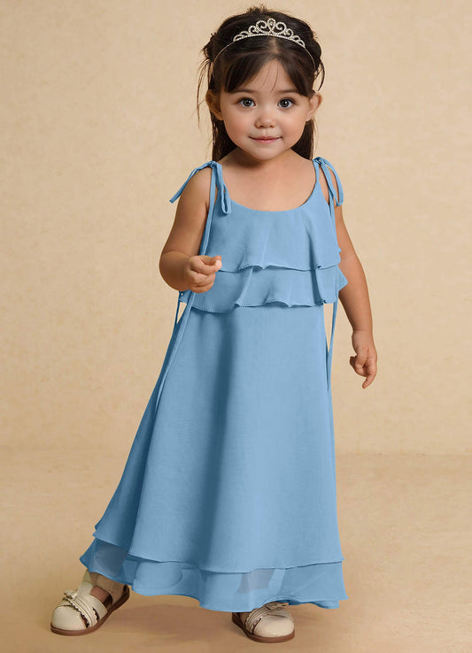 Dusty Blue A-Line Spaghetti Strap Chiffon Dress