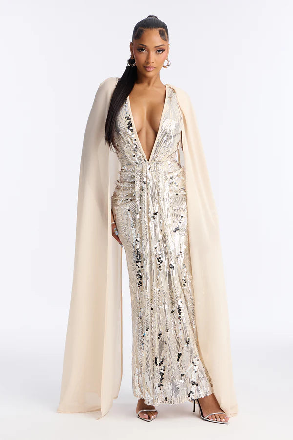 This dress has a unique and bold cut, and the fabric exudes charm under the light. This dress is perfect for formal evenings, dances, or beauty pageants, showcasing a stunning appearance in any