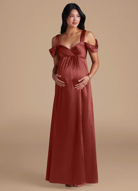 A-Line Stretch Satin Floor-Length Dress with Pockets Terracotta