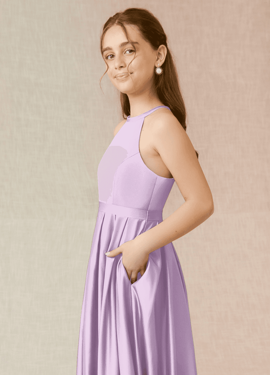 Eucalyptus A-Line with Pockets Matte Satin Dress