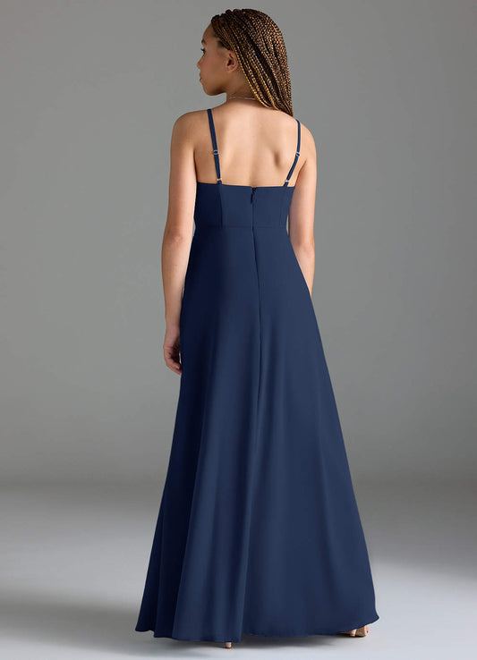 Steel Blue A-Line Pleated Stretch Satin Dress