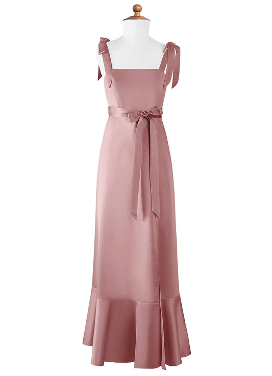 Blushing Pink A-Line Bow Stretch Satin Dress
