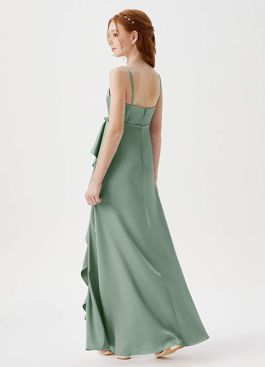 Eucalyptus A-Line with Belt Stretch Satin Dress