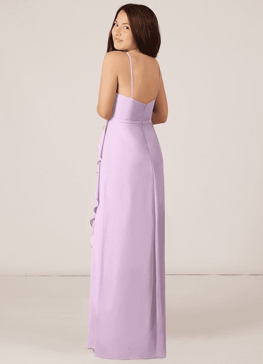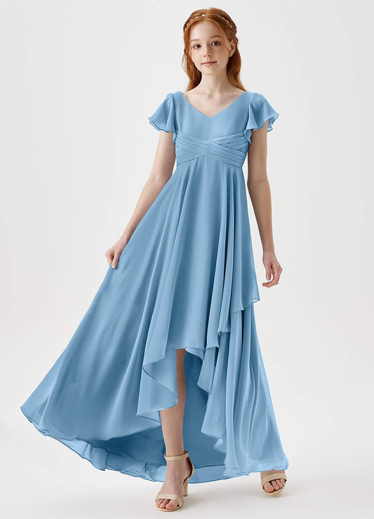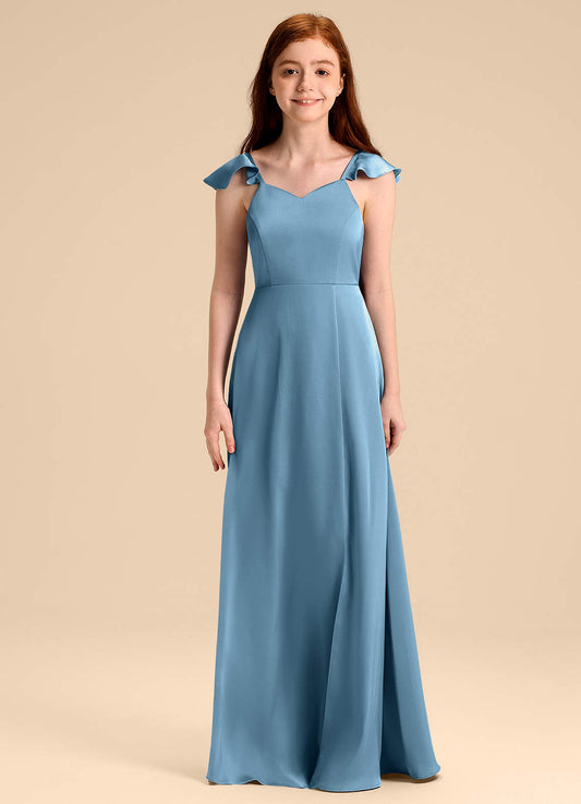 Dusty Blue A-Line Pleated Stretch Satin Dress