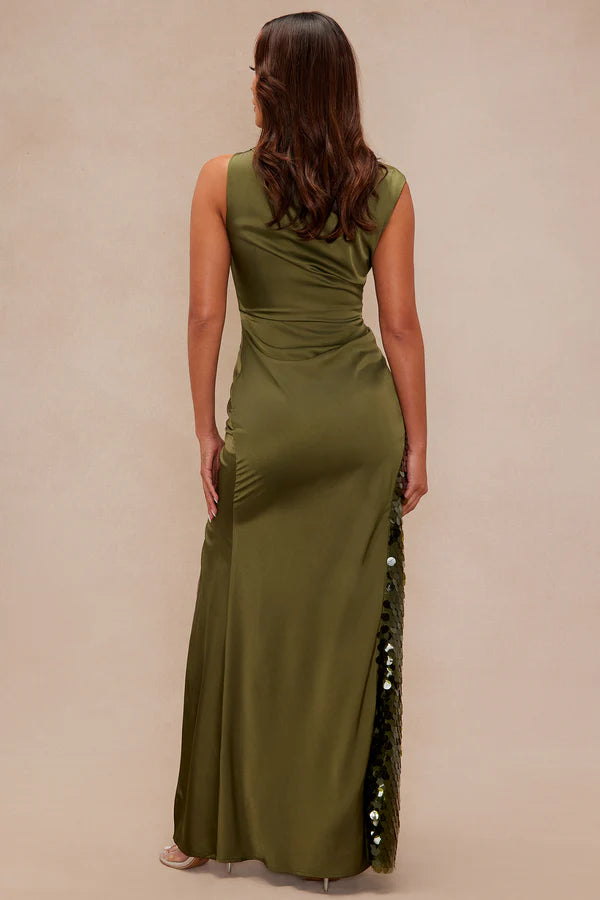 Clairese Satin Sequin Maxi Dress - Olive