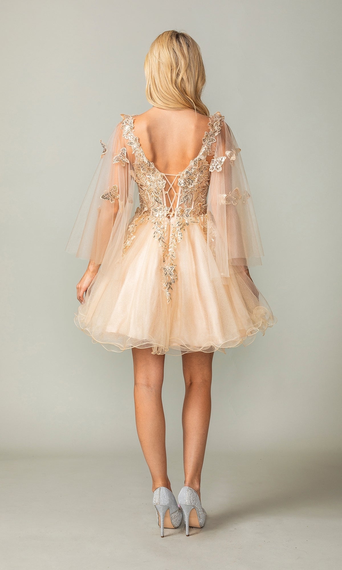 Butterfly-Cape Short A-Line Homecoming Dress 3393