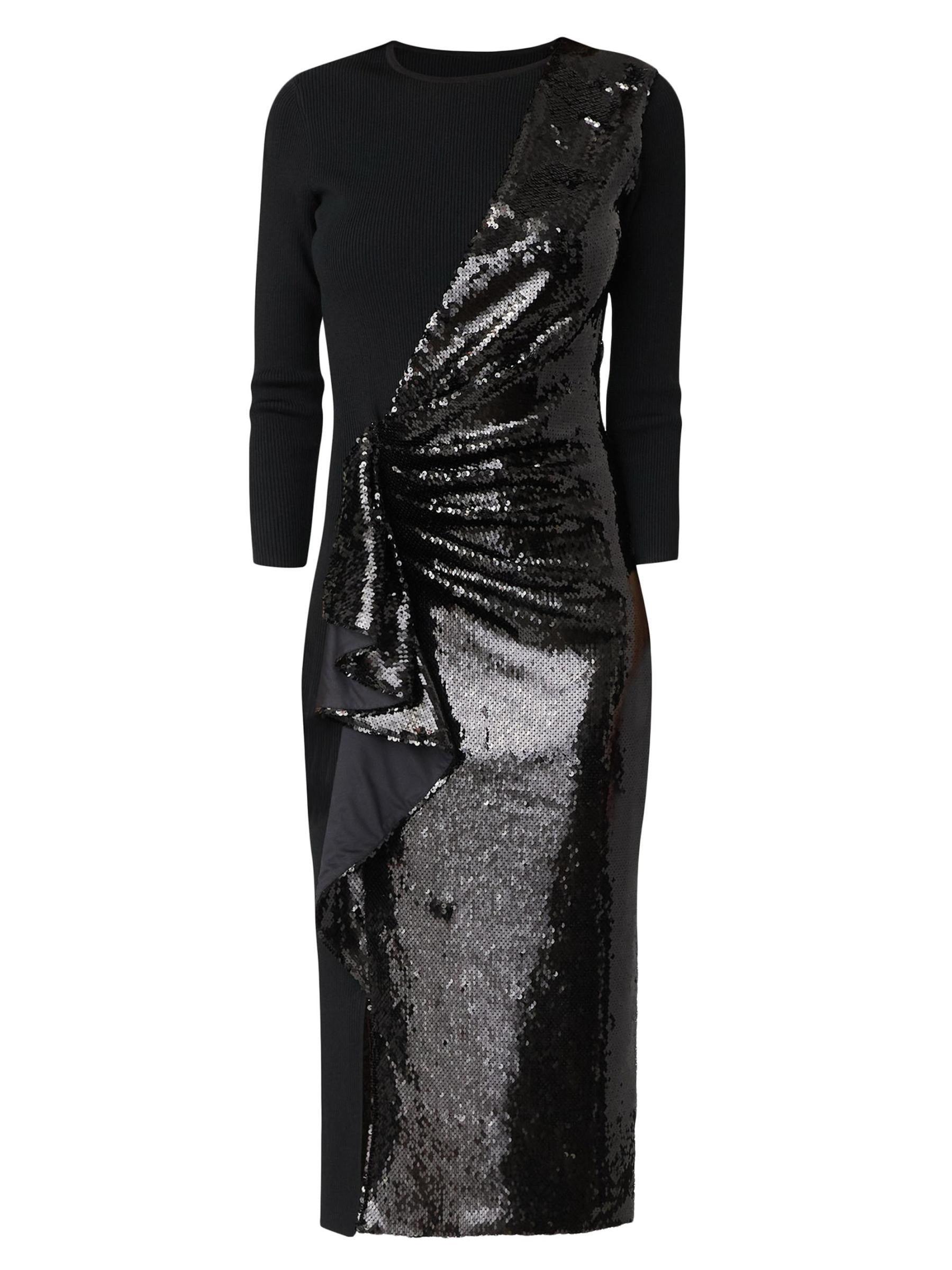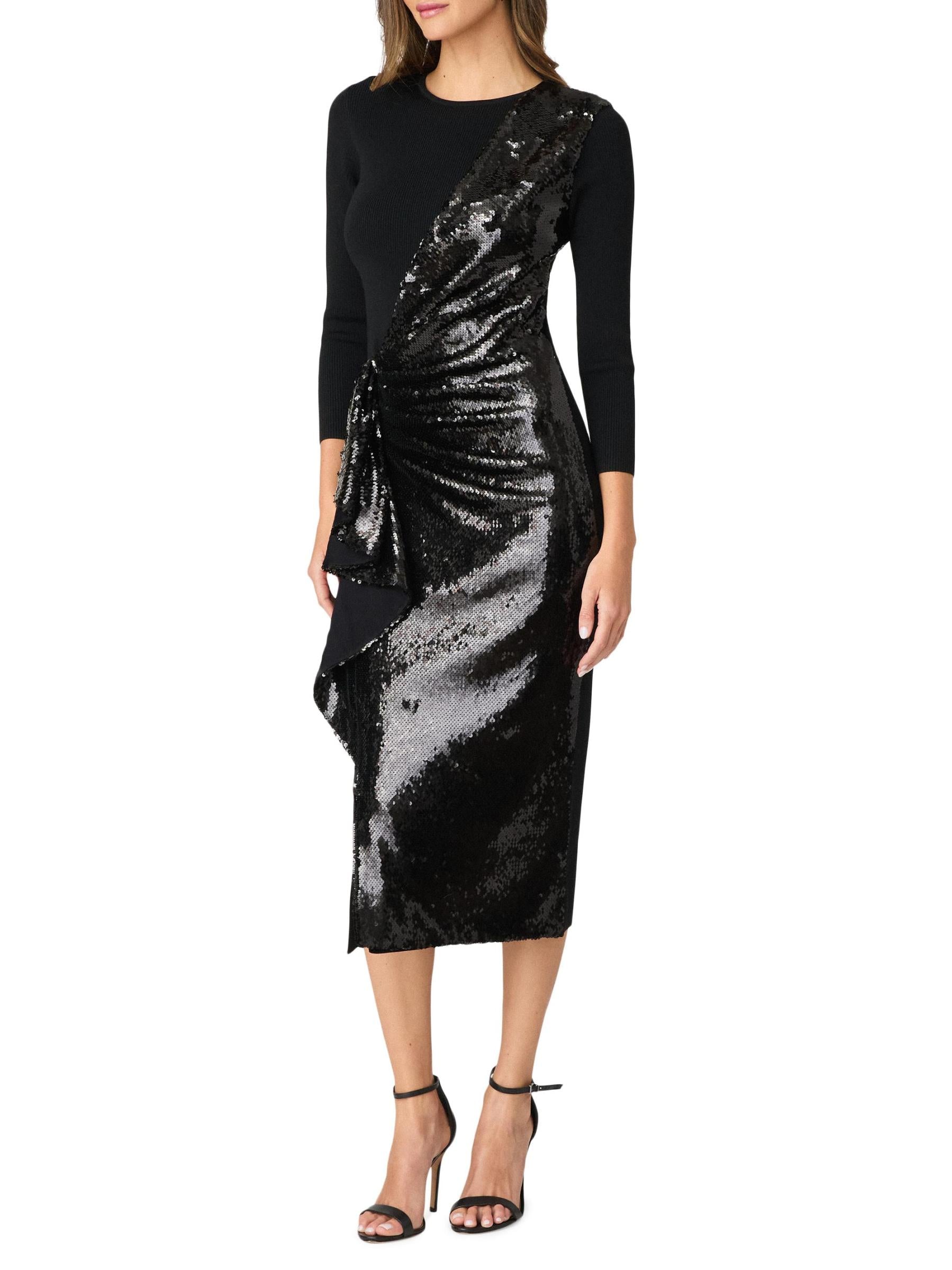 Dela Sequin Ruffle Three-Quarter Sleeve Midi-Dress