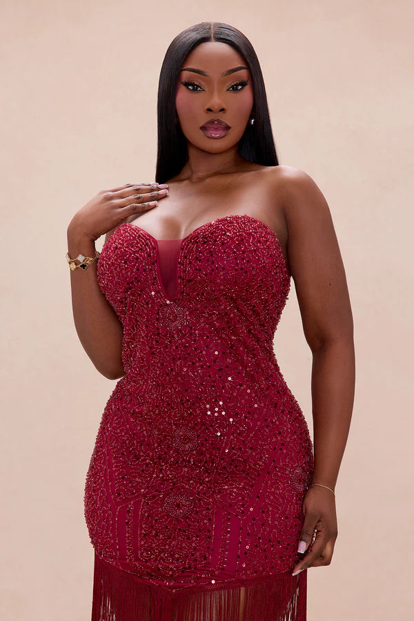 Francesca Fringe Trim Sequin Mini Dress - Burgundy