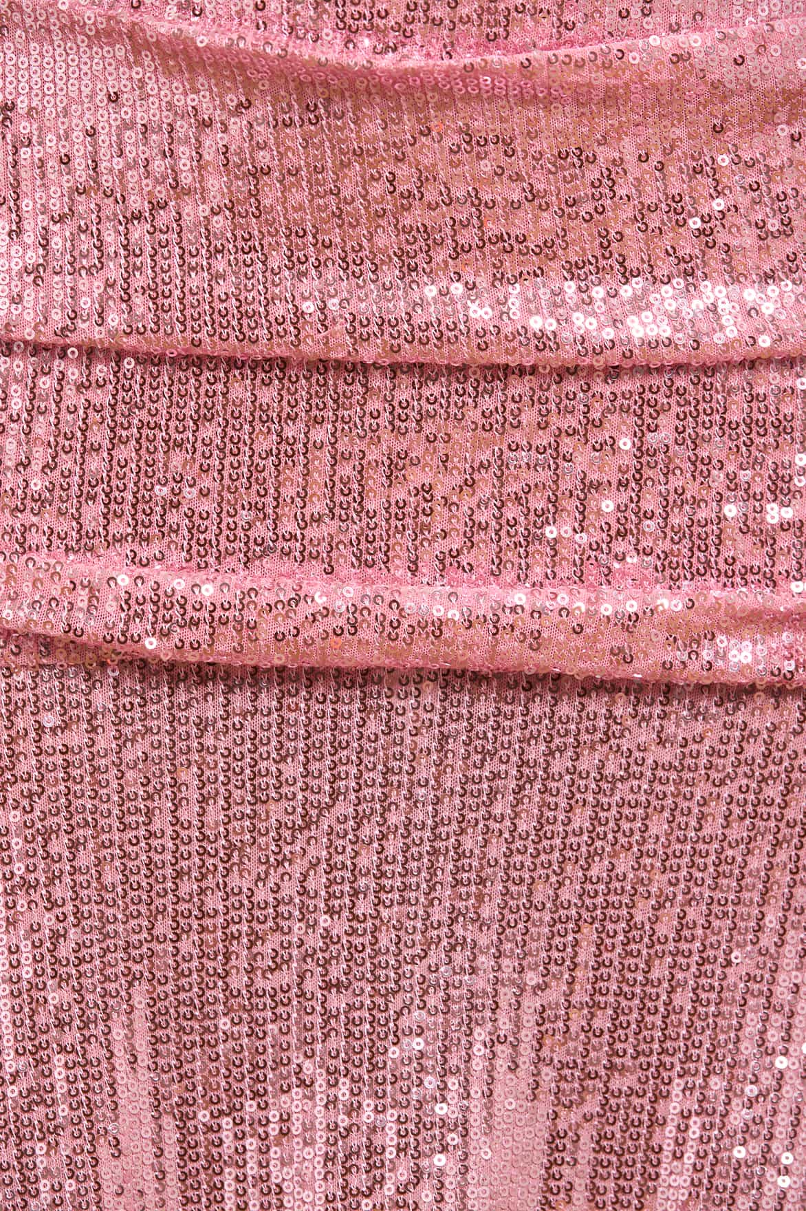 This gown features shimmering dot motifs that create a glittering effect, with sequins coated for a lustrous, high-shine finish. Designed as a sheer statement dress, it includes an integrated stretch bodysuit for comfort. Crafted with slim sleeves and a round neckline, adorned with signature Needle & Thread tulle frills, complete the look. The ultimate piece for an upcoming special occasion. tulle sheer dress decorated with tonal sequins.
