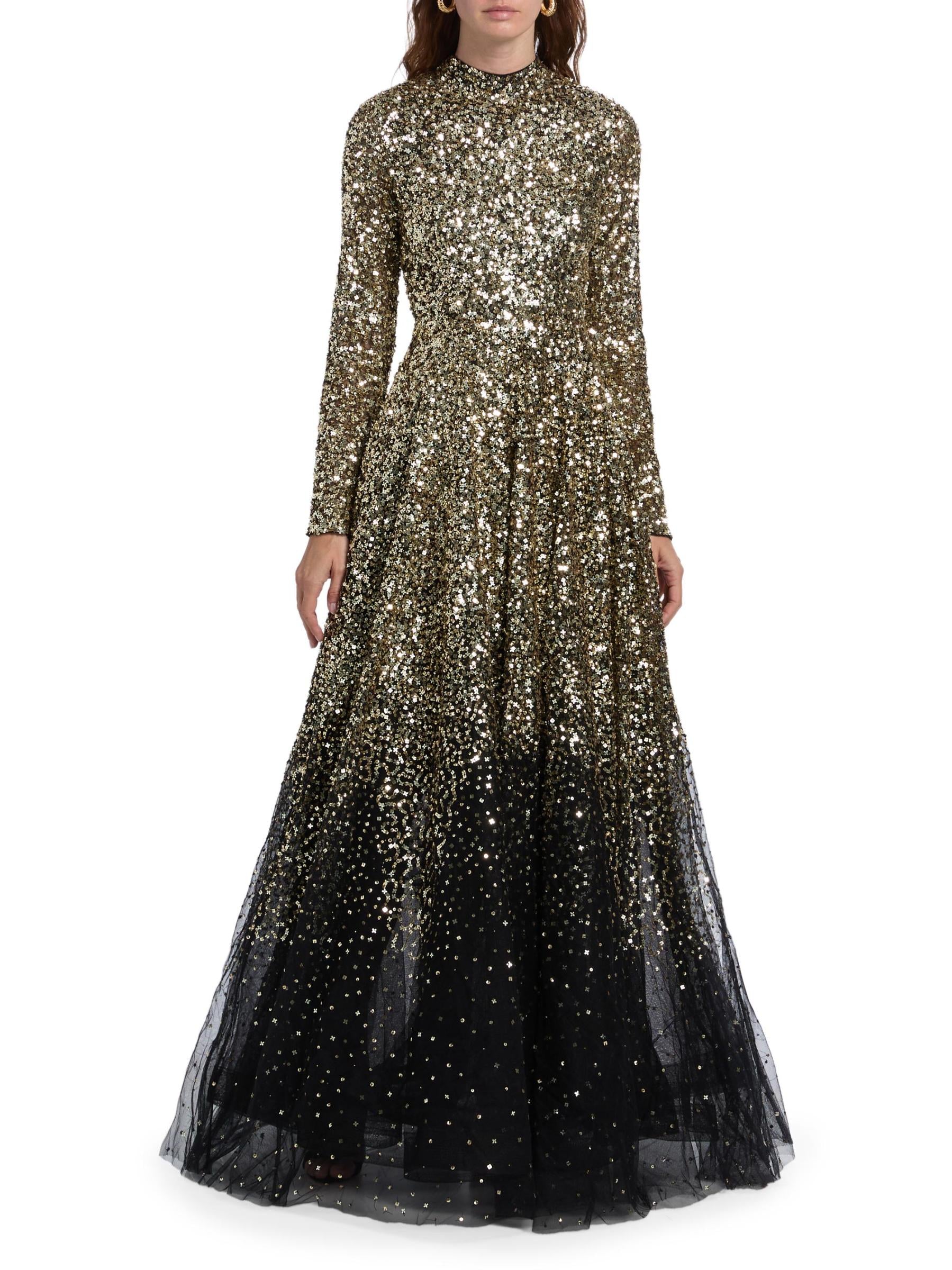 Ina Sequin-Embroidered Long-Sleeve Gown