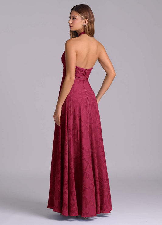 Terracotta A-Line V-Neck Pleated Chiffon Dress
