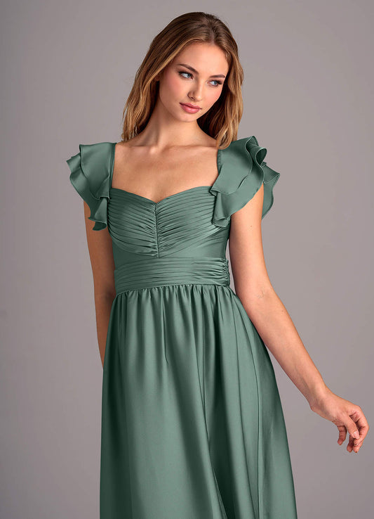 Dusty Sage A-Line Sweetheart Neckline Chiffon Dress