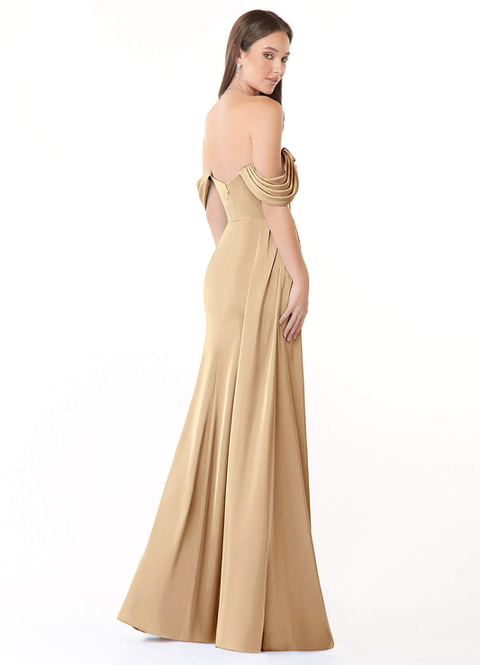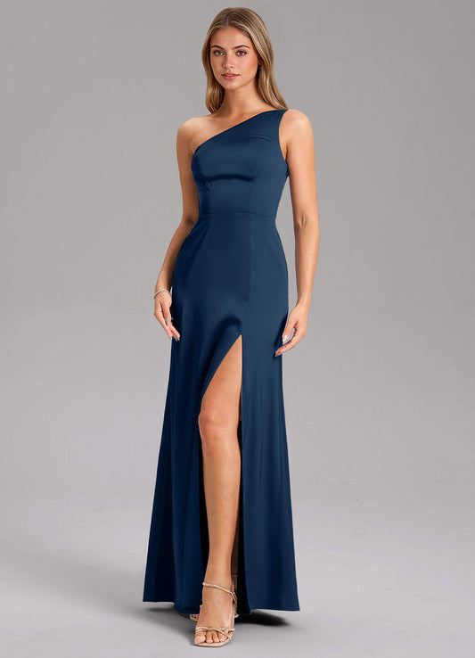 Champagne A-Line One Shoulder Stretch Satin Dress