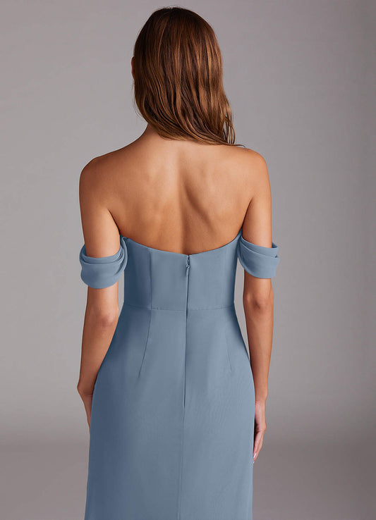 Eucalyptus Sheath Off the Shoulder Chiffon Convertible Dress
