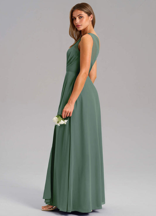 Dusty Blue A-Line One Shoulder Chiffon Dress