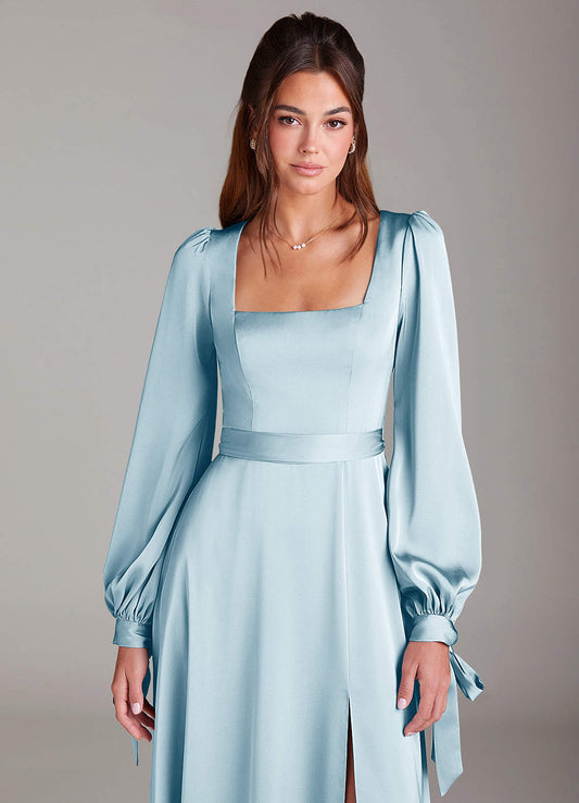 Matcha A-Line Long Sleeve Stretch Satin Dress