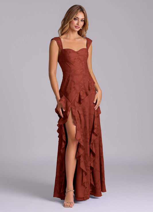 Terracotta A-Line Sweetheart Neckline Stretch Satin Dress