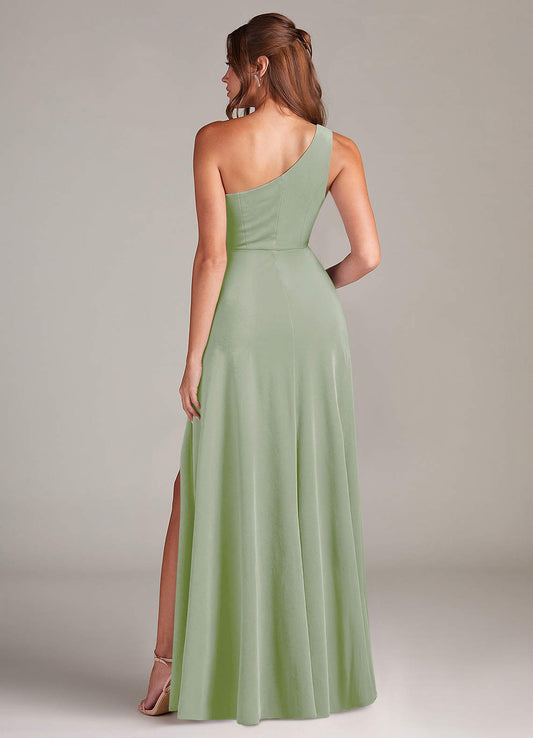 Eucalyptus A-Line One Shoulder Velvet Dress