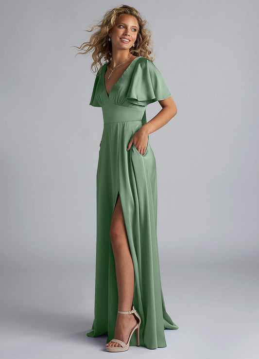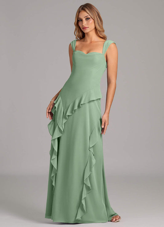 Dusty Sage A-Line Sweetheart Neckline Chiffon Dress
