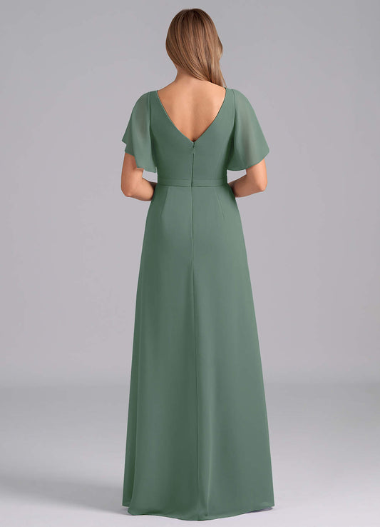 Eucalyptus A-Line Pleated Chiffon Dress