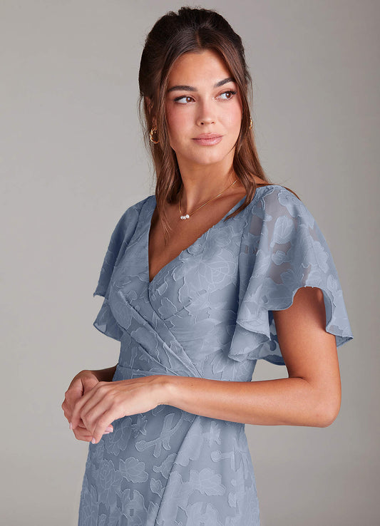 Dusty Blue A-Line Ruffled Chiffon Dress