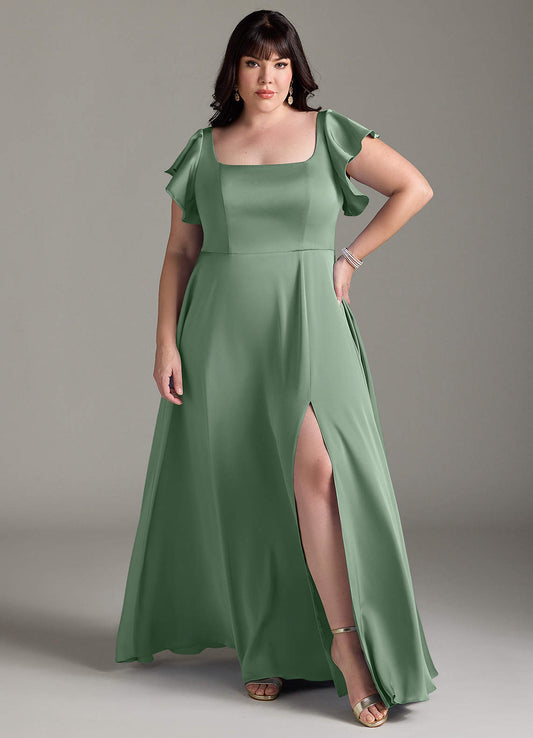 Dusty Sage A-Line Pleated Stretch Satin Dress