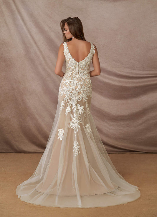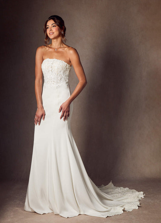 Diamond White Mermaid Lace Crepe Back Satin Dress