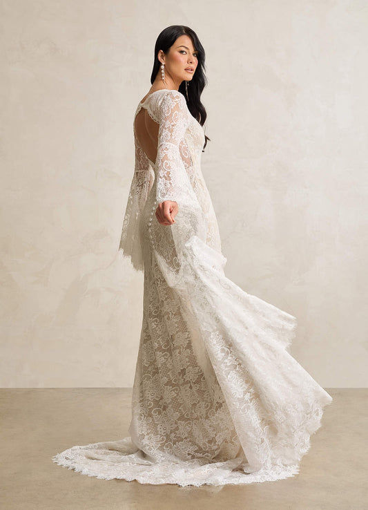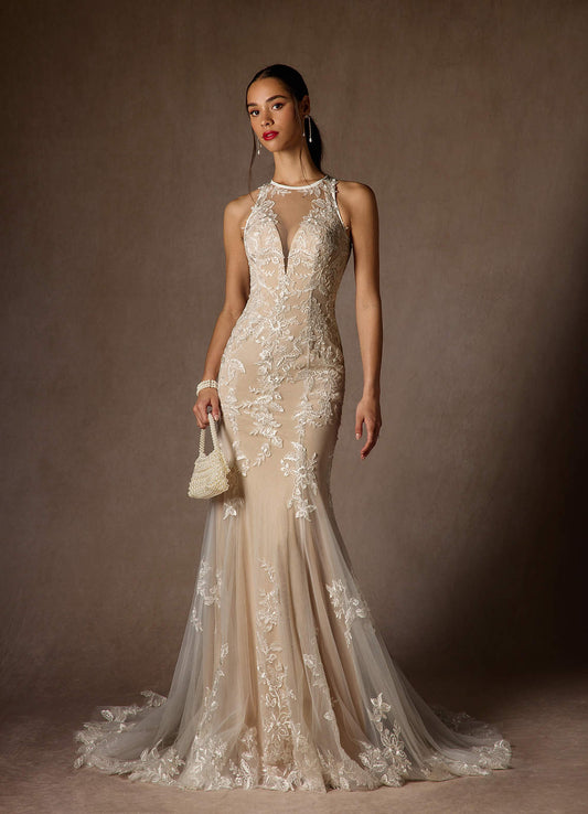 Diamond White Mermaid Bateau Neckline Crepe Back Satin Dress