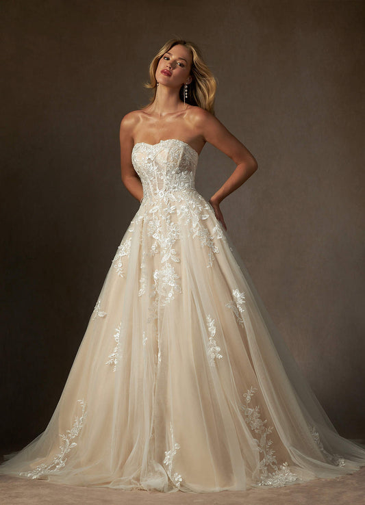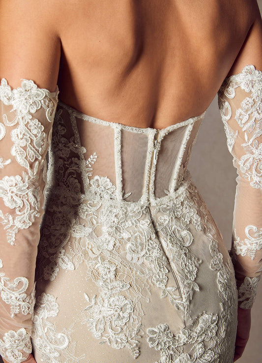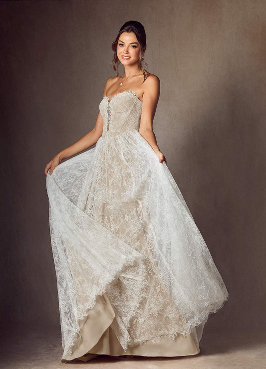 Diamond White A-Line Sweetheart Lace Tulle Dress